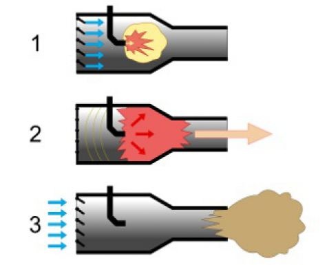 В конструкторском бюро имени А.Люльки разработан, изготовлен и испытан пульсирующий резонаторный детонационный двигатель с двухстадийным сжиганием керосиновоздушной топливной смеси со средней измеренной тягой свыше 100 кг и длительностью непрерывной работы более 10 минут. При этом, измеренные величины удельной тяги и удельного расхода топлива на 30-50 проц лучше, чем у классических воздушно-реактивных двигателей, работающих в сходных условиях. Это было подтверждено результатом прямых сравнительных испытаний. Ожидаемые результаты использования предлагаемой высокочастотной, бесклапанной, пульсирующей, детонационной технологии позволят: увеличить тяговооруженность летательного аппарата в 1,5-2 раза. В настоящее время на основе проведенных исследований и схемно-конструкторского анализа ведется разработка семейства авиационных пульсирующих двигателей, которые могут найти применение в широком диапазоне летательных аппаратов: от "дешёвых" короткоресурсных двигателей для беспилотных летательных аппаратов и ракет, до самолетных двигателей с крейсерским сверхзвуковым полетом, а в перспективе - двигателей ракетно-космических систем и комбинированных силовых установок воздушно- космических самолётов. Напомним что идея пульсирующих двигателей не нова. На таком двигателе летала знаменитая фашисткая «вундерваффе» Фау-1.