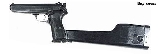 После окончания Второй мировой войны перед конструкторами стрелкового оружия была поставлена задача разработки нового боевого пистолета, которым следовало вооружить спецподразделения Советской Армии и командный состав Вооруженных Сил. Этим занималось несколько конструкторских бюро, в том числе и Калашникова.Его пистолет был разработан в 1950 году как штурмовое оружие, которое можно использовать в качестве пистолета-пулемета. Спусковой механизм экспериментального автоматического пистолета Калашникова обеспечивал ведение как непрерывного, так и одиночного огня. Пистолет имел ударный механизм куркового типа с поворотным курком.Для упрощения конструкции и повышения надежности работы самовзвод курка исключен. Действие автоматики основано на использовании энергии отдачи свободного затвора.Питание патронами производится с двухрядного магазина с шахматным расположением патронов. Пистолет, по аналогии с известной системой "маузер", имеет жесткую деревянную кобуру. Кобура используется в качестве приклада для более жесткой фиксации при стрельбе, особенно в режиме автоматического огня.Автоматика работает на принципе отдачи свободного затвора. Запирание осуществляется массой затвора, подпираемого возвратной пружиной. Ударно-спусковой механизм рассчитан для ведения одиночного и автоматического огня. Предохранитель одновременно выполняет и функцию переводчика огня.