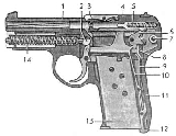 Пистолет ТК (Тульский, Коровина) под маломощный 6,35 мм патрон Браунинга, создал конструктор С. А. Коровин (1884-1946), который в молодости ряд лет работал в Льеже (Бельгия) на оружейной фабрике Дж. Браунинга. Специально для этого пистолета был создан патрон того же калибра и с усиленным зарядом пороха. Пистолет ТК заменил популярный до его появления пистолет Браунинга обр.1906 г. При близких к нему габаритах ТК имеет большую дульную энергию, большее количество патронов в магазине, более удобную рукоятку, лучшее прицельное приспособление и более удобно расположенный предохранитель. Внешне он похож на пистолет Маузера обр. 1910 г. Пистолет ТК выпускался с 1926 по 1935 гг. для командного состава РККА, НКВД, партийных и хозяйственных работников. Автоматика пистолета работает за счет использования отдачи свободного затвора. Ударно-спусковой механизм ударникового типа. Пистолет имеет неавтематический предохранитель, запирающий спусковой крючок. Прицел открытого типа. Особенностью пистолета является отсутствие разобщителя как отдельной детали, его заменяет пружинность самого шептала. Пистолет имеет малые размеры и массу, что делает его удобным для длительного скрытого ношения. Применение патронов российского производства обеспечивает более высокую мощность, чем у пистолета Браунинга образца 1906 года (сходного по габаритам и массе). Несмотря на короткую прицельную линию и небольшую рукоятку, пистолет благодаря удачной компоновке и форме рукоятки, обеспечивающей надежное его удержание, отличается хорошей меткостью стрельбы. "Мягкий" спуск и отсутствие курка, ударяющего по рамке пистолета в момент взведения, положительно сказываются на кучности стрельбы. Пистолет устойчив к загрязнению, надежен в работе. Простота конструкции позволяет самостоятельно производить мелкий ремонт оружия. Пистолет характеризуется низким останавливающим действием пули и невысокой дульной энергией (около 104 Дж). Подобные величины не обеспечивают надежного вывода противника из строя даже при попадании пули в жизненно важные органы. Раненый противник способен произвести ответный выстрел. Дальность эффективного действия пистолета ТК не превышает 15-20 метров. Отсутствие самовзвода делает невозможным быстрое и внезапное применение оружия. А ношение постоянно взведенного пистолета опасно для владельца, так как довольно часто наблюдались случаи срыва ударника с боевого взвода (особенно при износе шептала) в связи с тем, что предохранитель блокирует только спусковой крючок и не воздействует на ударник. Кроме того, при ношении постоянно взведенного пистолета могут возникать осечки из-за "осаживания" боевой пружины.