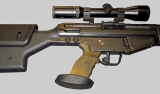 В середине 80х годов фирма Heckler und Koch, в сотрудничестве с различными противотеррористическими организациями, включая немецкую GSG9 и британскую SAS, создала дальнобойную самозарядную снайперскую винтовку PSG-1. Винтовка создана на базе штатной автоматической винтовки Бундесвера G3, и испльзует тот же принцип - полусвободный затвор с замедлением при помощи роликов. От G3 отличается невозможностью ведения огня очередями, специальным тяжелым стволом длиной 650mm с полигональной нарезкой, измененным прикладом с упором для щеки, регулируемым спусковым крючком, измененной рукояткой управления огнем в спортивном стиле и специальными направляющими на ствольной коробке для крепления оптических прицелов. Стандартно PSG-1 поставляется с прицелом Hensoldt 6X фиксированной кратности с подсветкой прицельной сетки.