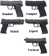 HK USP (Universal Selbstlade Pistole - Универсальный Самозарядный Пистолет), впервые был обьявлен в 1993 году в в ариантах под патрон 9х19 и .40СВ.Пистолеты USP создавались в первую очередь как военное и полицейское оружие. USP построен по модифицированной Браунинговской схеме с коротким ходом ствола и запиранием одним выступом через окно для экстракции гильз. Кроме того, все модели USP имеют патентованный механизм демпфирования отдачи, обеспечивающий высокую живучесть (до 20.000 выстрелов) и комфортность стрельбы.Рамка пистолета - из полимеров, со вставками из нержавеющей стали, затвор - из нержавеющей стали или из обычной, со специальным защитным покрытием. На нижней части рамки под стволом сделаны специальные направляющие для установки ЛЦУ или тактического фонаря. Одна из особенностей семейства пистолетов USP - большой выбор вариантов УСМ - аж 9, включая режимы двойного или Только двойного действия, наличие или отсутствие неавтоматического предохранителя и/или рычага безопасного спуска курка.В 1994 году фирма ХК представила компактную версию пистолета - USP Compact. Он отличается уменьшенными размерами рамки и длиной ствола, а также меньшей емкостью магазина. Позже на основе USP Compact калибра .40СВ был выпущен варант под патрон .357SIG (другие варианты USP под этот патрон не выпускаются).В 1995 году на свет появился USP калибра .45АСР, ориентированный в основном на рынок США, а несколько позже - вариант USP Tactical, отличающийся от USP .45 удлиненным стволом с резьбой для установки глушителя (аналогичный глушитель используется в пистолете Мк.23), регулируемым прицелом и матчевым УСМ. USP Tactical предназначен также в основном для американского полицейского рынка.Помимо "боевых" модификаций, ХК выпустила ряд спортивных моделей на базе USP. USP Match имеет ствол с полигональной нарезкой, дульный тормоз-компенсатор, УСМ отрегулированный под требования целевой стрельбы.Помимо "боевых" модификаций, ХК выпустила ряд спортивных моделей на базе USP. USP Match имеет ствол с полигональной нарезкой, дульный тормоз-компенсатор, УСМ отрегулированный под требования целевой стрельбы.USP Expert имеет удлиненный до 152мм ствол и соответственно удлиненный затвор, а также повышенную емкость магазина - 18 патронв 9мм, 16 патронов .40 или 12 - калибра .45. Пистолет предназначен в первую очередь для Европейских соревнований по правилам IPSC, так как импорт в США гражданского оружия с емкостью магазина свыше 10 патронов запрещен с 1994 года.Помимо этого, варианты USP состоят на вооружении в Германии. Модификация USP под обозначением Р8 принята на вооружение Бундесвера, и отличается тем, что имеет УСМ двойного действия с одним рычагом, включающим предохранитель и одновременно снимающим курок с боевого взвода, а также тем, что выпускается только под патроны 9х19мм НАТО.Вариант под обозначением Р10 фактически являестя пистолетом USP Compact и принят на вооружение федеральной полиции ФРГ. |