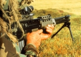 Британский легкий пулемёт L86A1 предназначен для поражения живой силы противника. Разработан на базе штурмовой винтовки (автомата) L85A1. Компоновка пулемёта выполнена по схеме буллпап. Автоматика работает за счет отвода части пороховых газов из канала ствола. Канал ствола при выстреле запирается постановкой затвора на боевые выступы. Ударно-спусковой механизм позволяет ведение автоматического и одиночного огня. Газоотводное устройство имеет регулятор для стрельбы в нормальных условиях (нормальное отверстие), стрельбы в условиях повышенной загрязненности (увеличенное отверстие). На крышке ствольной коробке устанавливается стандартный оптический прицел. При выходе его из стоя используется механический не регулируемый прицел, находящийся сверху корпуса оптического прицела. Возможна также установка стандартных NATOвских оптических и ночных прицелов или ручки для переноса оружия. |