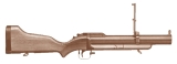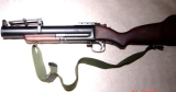 Гранатомет М-79 принятый на вооружение в США в 1961 году, предназначен для поражения живой силы противника находящейся на открытой местности, а так же в легких укрытиях. Для стрельбы применяются унитарные выстрелы, соответствующие стандартам NATO. Это оружие появилось во время Вьетнамской войны и было разработано как оружие поддержки для пехоты, предназначенное для того, чтобы заполнить нишу в расстоянии между максимальным броском ручной гранаты и самого близкого огня миномета (между 50 и 300 метрами). Безопасное обращение обеспечивается детонаторами применяемых гранат, которые встают на боевой взвод в 15 метрах от дульного среза после выстрела. Перезарядка гранатомета производиться путем откидывания ствола вниз. |