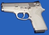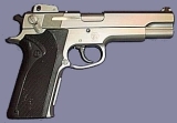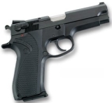 Американская фирма Smith&Wesson более известна как производитель револьверов - их револьвер модель 10 Military & Police является самым массово выпускающимся в мире. Тем не менее, фирма также выпускала и выпускает и самозарядные пистолеты (примерно с начала ХХ века), однако настоящий успех на этом поприще к S&W пришел в 1955 году, когда фирма после нескольких лет разработки выпустила на рынок США самозарядный пистолет модель 39. Пистолет оказался первым с ударно-спуковым механизмом двойного действия из выпускавшихся в США. Он, и его дальнейшие модификации, широко использовался в полиции США, а также во Флоте и ВВС США.Так как все последующие пистолеты фирмы S&W практически повторяют конструкцию модели 39, я подробно опишу ее, а в дальнейшем буду просто указывать на отличия в других моделях.Пистолет S&W модель 39 представляет собой самозарядное оружие, построенное по схеме с коротким ходом ствола. Сцепление ствола с затвором осуществляется одним выступом, снижение ствола для расцепления - по схеме Браунинга, при взаимодействии наклонного выступа в нижней задней части свтола с рамкой пистолета. УСМ двойного действия, предохранитель расположен на затворе слева, и при включении автоматически ставит курок на предохранительный взвод. Магазин однорядный, на 8 патронов. Прицельные приспособления - регулируемые в горизонтальной плоскости. Материал пистолета - сталь. В 1970 году S&W выпускает модель 59 - модификацию пистолета модель 39, но с двухрядным магазином емкостью 14 патронов. Другим отличием модели 59 являлась рукоятка со спрямленной задней частью (см.фото), в остальном конструкция идентична модели 39.Пистолеты моделей 39 и 59 составили так называемое первое поколение пистолетов S&W. Их выпуск был прекращен примерно к 1980 году.Второе поколение пистолетов S&W было представлено в 1980 году. Пистолеты второго поколения приобрели трехзначную нумерацию моделей, и отличались от пистолетов первого поколения различными матриалами рамки и затвора, измененными прицельными приспособлениями и некоторыми другими косметическими отличиями, при этом оставаясь конструктивно идентичными моделям 39 и 59.Нумерация моделей 2го поколения осуществлялась по следующей схеме: