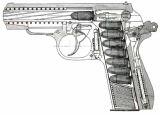 Наряду с Токаревым и еще тремя конструкторами М. В. Марголин участвовал в конкурсе на разработку нового армейского пистолета калибра 7,62 мм, на замену ТТ. По прошествии некоторого времени он вышел из состава участников по собственной инициативе, посчитав, что пришло время работать над конструкцией под 9-мм патрон.Сам факт создания Марголиным удачной конструкции 9-мм пистолета практически неизвестен. В 1940 г. им был представлен на испытанияНИПСМВО (Научно-исследовательский полигон стрелкового и минометного вооружения) 9-мм пистолет для высшего комсостава армии ТКБ-205 под патрон ПП-39 (прообраз 9-мм патрона ПМ - 9х18).Пистолет ТКБ-205 представлял из себя систему со свободным затвором. Ударно-спусковой механизм несамовзводный. Боевая пружина спиральная. Ударник подпружинен. Кнопочный предохранитель блокировал шептало и курок на боевом взводе. Прицельные приспособления состояли из мушки полукруглого профиля и неподвижного целика. Рукоятка пластмассовая, охватывающая рамку (как у ПМ). Из особенностей пистолета можно отметить трехперую пластинчатую пружину, выполняющую роль пружины шептала, спускового крючка и защелки магазина. Ствол при неполной разборке снимается.Для неполной разборки пистолета необходимо вынуть магазин, несколько отвести затвор назад и удерживать его в таком положении. Затем, взявшись за переднюю часть направляющего стержня возвратной пружины, оттянуть его вперед и, перекосив вниз заднюю часть, выполняющую роль стопора ствола, отпустить. После этого ствол поворачивают на 90њ и вместе с затвором отделяют от рамки в направлении дульного среза.На полигоне ТКБ-205 сравнивался с самовзводным пистолетом ПВК-1. При испытаниях на безотказность действия автоматики ТКБ-205 дал 10,0% задержек, против 43,3% у ПВК-1. Соотношение задержек в процессе проведения всех испытаний: 8,2% у ТКБ-205 и 11,2% у ПВК-1. Комиссией было признано, что "автоматика обоих пистолетов работает неудовлетворительно".Пистолеты показали примерно одинаковую кучность боя и пробивное действие.ТКБ-205, прежде всего в виду отсутствия самовзвода, значительно превзошел ПВК-1 по простоте конструкции: 23 заводских детали против 54.В итоге, по сумме всех результатов испытания выдержали оба образца, но ПВК-1 не был рекомендован на доработку, так как комиссия признала его "копией пистолета "Вальтер", только измененного калибра".Кстати, отношение испытателей к иностранным конструкциям было далеко не пренебрежительным. Так. НИПСМВО считало целесообразным "параллельно с доработкой пистолета "ТКБ-205", вести разработку образца с учетом всех положительных сторон пистолетов системы "Вальтер" и "Беретта".Комиссия по проведению испыта ний, говоря о ТКБ-205, отмечала: "система по конструкции заслуживает внимания (простота освоения, небольшое количество деталей и простота их производства, плоскостность формы и хороший габарит), целесообразна дальнейшая доработка в части совершенствования прицельных приспособлений, придания более удобной формы рукоятке (передней ее части) и устранения удара курком по руке при стрельбе". Однако, с началом Великой Отечественной войны к перспективному армейскому пистолету появилось дополнительное требование - обязательное наличие самовзводного ударно-спускового механизма и доработка пистолета ТКБ-205 была прекращена.