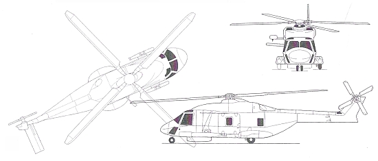 ЛТХ (расчетные): крейсерская скорость 290 км/ч (NFH) и 300 км/ч (ТТН); дальность полета с максимальным запасом топлива 1200 км Масса: пустого 5400 кг (ТТН) и 6430 кг (NFH); максимальная взлетная 10000 кг Размеры: диаметр несущего винта