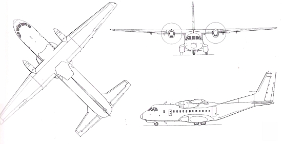 Индонезия - Испания Тип: многоцелевой тактический военно-транспортный самолет Платная нагрузка: максимальная 6600 кг; до 48 десантников с вооружением или 24 раненых на носилках и 4 санитара