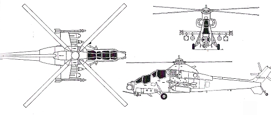 15,58 м; длина с вращающимися винтами 18,73 м; высота с вращающимися винтами 5,19 м; ометаемая несущим винтом площадь 190,64 м2 |
