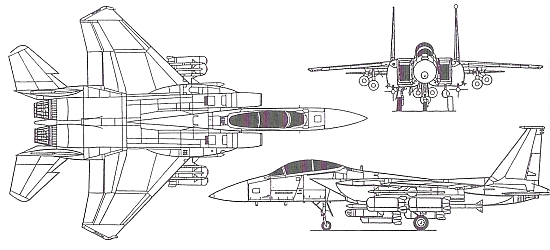 Испытания самолета F-15 в качестве ударного начались в 1982 г., когда фирма «Макдоннелл-Дуглас» по собственной инициативе создала двухместный истребитель-бомбардировщик TF-15А «Страйк Игл». Предполагалось, что он станет заменой для истребителей Дженерал Дайнэмикс F-111. Именно «Страйк Игл» выиграл конкурс у самолета Дженерал Дайнэмикс F-16XL, проводившийся в рамках программы ВВС США по созданию усовершенствованного многоцелевого тактического истребителя. 11 декабря 1986 г. состоялся первый полет серийного самолета F-15E (от названия «Страйк Игл» отказались). Оснащенный новой авионикой и приборами, позволяющими летать в условиях плохой видимости, самолет F-15E можно отнести скорее ко второму поколению семейства истребителей F-15 «Игл». Оператор систем оррия, размещающийся в задней кабине, имеет перед собой четыре цветных многофункциональных дисплея на ЭЛТ для отображения работы БРЛС, выбора оружия и получения информации от системы предупреждения о радиолокационном облучении. Он также управляет основными системами самолета: поисковой РЛС APG-70 с синтезированной апертурой и размещенной в контейнерах навигационно-прицельной системой LANTIRN, разработанной фирмой «Локхид Мартин»: в контейнере AAQ-13 размещается навигационное оборудование, а в контейнере AAQ-14 - система прицеливания. В навигационном контейнере установлена РЛС слежения за рельефом местности, которая обеспечивает полет в режиме огибания наземных препятствий. Первоначально на самолеты F-15E устанавливались ТРДЦ F100-PW-220, однако, начиная с августа 1991 г., стали устанавливать усовершенствованные двигатели F100-PW-229. Новые двигатели стали также применять и на ранее построенных истребителях. Первые ударные самолеты F-15E вошли в 1989 г. в состав 4-го тактического авиакрыла, базирующегося на авиабазе Джонсон (штат Северная Каролина). Первое боевое крещение эти самолеты получили в 1991 г. во время операции «Буря в пустыне» в Персидском заливе, где они отлично себя зарекомендовали. Всего ВВС США заказали 209 самолетов; все они были поставлены до июля 1994 г. Выпуск самолетов продолжался и до 2001 г., но это были небольшие партии для замены выбывших из строя самолетов. Истребители F-15E поставлялись на экспорт. Например, в 1995-2000 гг. Саудовская Аравия закупила 72 самолета. В 1998-2000 г.х Израиль закупил 25 самолетов под обозначением F-151 «Раам» («Гром»), а в 2002 г. Южная Корея заказала 40 истребителей F-15K, которые должны быть поставлены в 2005-2008 гг.