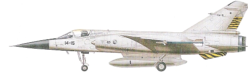 Страна-разработчик: Франция Тип: истребитель-перехватчик Вооружение: две встроенные 30-мм пушки DEFA 553 с боезапасом по 135 снарядов; стандартное вооружение состоит из двух УР класса воздух-воздух «Супер» 530 и R550 «Мажик»; максимальная боевая нагрузка 4000 кг, в состав которой могут входить изготовленные во Франции противора- диолокационные УР ARMAT, УР класса воздух-поверхность AS.30L, ПКР АМ.39 «Екзосет», обычные бомбы калибром 250 кг и одна КАБ с лазерным наведением BGL-400 калибром 400 кг Двигатель: один ТРДФ SNECMA «Атар» 9К-50 тягой 5005 кгс и 7170 кгс на форсажном режиме ЛТХ: максимальная скорость на высоте 11000 м - 2340 км/ч; скороподъемность 213 м/с; практический потолок 20000 м; боевой радиус в ударном варианте с бомбами калибром 250 кг при полете по профилю большая - малая - большая высота - 425 км