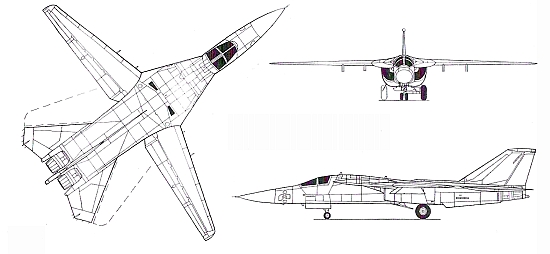 Двигатели: два ТРДЦФ Пратт-Уитни TF30- Р-3 тягой по 8400 кгс на форсажном режиме ЛТХ: дальность полета со стандартным запасом топлива более 4700 км Массы: пустого снаряженного 21540 кг; максимальная взлетная 45360 кг Размеры: размах крыла при минимальном угле стреловидности 19,2 м; при максимальном - 9,74 м; длина 22,4 м; высота 5,22 м; площадь крыла при минимальном угле стреловидности 48,77 м2 |