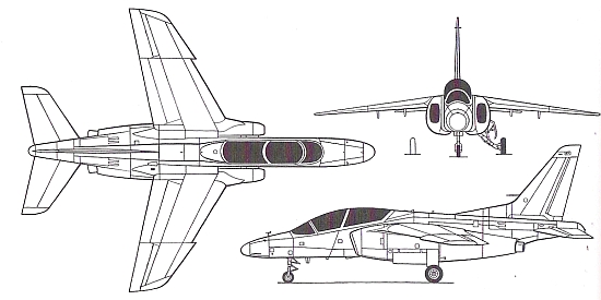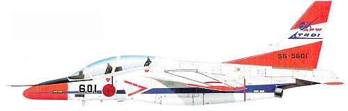 Страна-разработчик: Япония Тип: двухместный УТС для промежуточной подготовки (может использоваться для УБС и как штабной) Вооружение: максимальная боевая нагрузка 2000 кг, в том числе обычные бомбы, бомбы с тормозным парашютом, блоки с PC калибром 70 мм, контейнеры с пушками; возможно использование ПКР ASM-2 с тепловым наведением и УР класса воздух-воздух ближнего боя АА-4 Двигатели: два ТРДЦ Исикавадзи- ма-Харима F3-IHI-30 тягой по 1670 кгс ЛТХ: максимальная скорость на высоте 10975 м - 955 км/ч; максимальная скороподъемность 51 м/с; практический потолок 15240 м; нормальная дальность полета 1300 км Массы: пустого 3700 кг; нормальная взлетная 5500 кг; максимальная взлетная 7500 кг Размеры: размах крыла 9,94 м; длина 13 м; высота4,6 м; площадь крыла 21 м2 |
