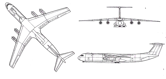 Страна-разработчик: США Тип: стратегический военно-транспортный самолет Платная нагрузка: максимальная 41220 кг; до 13 грузовых платформ в кабине; самолет С-141 В способен перевозить большую часть бронетанковой техники армии США, авиационные двигатели, продовольствие, топливо и ядерное оружие; возможна установка сидений на 166 пассажиров или раскладных сидений для 205 пассажиров или 168 десантников Двигатели: четыре ТРДЦ Пратт- Уитни TF33-P-7 тягой по 9535 кгс ЛТХ: крейсерская скорость - 910 км/ч; экономическая крейсерская скорость - 800 км/ч; скороподъемность 14,8 м/с; практический потолок 12680 м; дальность полета с максимальной платной нагрузкой 4725 км; перегоночная - 10280 км Массы: пустого 148120 кг; максимальная взлетная 155580 кг Размеры: размах крыла 48,74 м; длина 51,29 м; высота 11,96 м; площадь крыла 299,88 м2 |