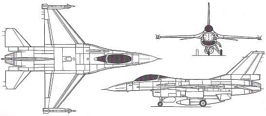 Страна-разработчик: США Тип: многоцелевой истребитель Вооружение: одна встроенная 20-мм шестиствольная пушка М61А1 «Вулкан» (боезапас 511 снярядов); максимальная боевая нагрузка 5440 кг, в том числе УР класса воздух- воздух AIM-9L7M/P, AIM-120B, УР класса воздух-поверхность AGM-65 «Мейврик», ПКР Конгсберг «Пингвин» Мк.З, планирующие кассетные боеприпасы DWS 39 Двигатель: один ТРДДФ Пратт-Уитни F100-P-220E тягой 12100 кгс на форсажном режиме ЛТХ: максимальная скорость 2125 км/ч; скороподъемность 254 м/с; практический потолок 15240 м; боевой радиус с шестью бомбами калибром 455 кг - 550 км Масса: пустого 6610 кг; максимальная взлетная 14970 кг Размеры: размах крыла с учетом УР на законцовках - 10,01 м; длина 15,03 м; высота 5,01 м; площадь крыла 28,87 м2 |
