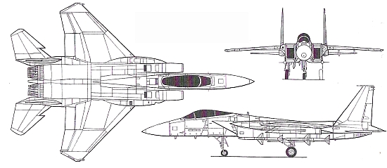 Тип: истребитель для завоевания превосходства в воздухе Вооружение: одна 20-мм пушка М61 (боезапас 940 снарядов); максимальная боевая нагрузка 7260 кг; самолеты ВВС США используют УР класса воздух-воздух AIM-120 AMFIAAM, AIM-7M «Спэрроу» и AIM-9M; ВВС Японии и Израиля используют УР класса воздух-воздух АА-4 и «Питон» 3/4, соответственно Двигатели: два ТРДЦФ Пратт-Уитни F100-P-220 тягой по 6660 кгс и 10820 кгс на форсажном режиме ЛТХ: максимальная скорость 2655 км/ч;скороподъемность 254 м/с; практический потолок 18290 м; радиус перехвата 1970 км Масса: пустого 12790 кг; нормальная взлетная 20245 кг Размеры: размах крыла 13,05 м; длина 19,43 м; высота 5,63 м; площадь крыла 56,48 м2 |