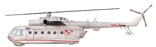 Вертолет Ми-8 (обозначение НАТО - «Hip») - один из самых популярных в мире многоцелевых вертолетов: с начала серийного выпуска в 1961 г. было построено свыше 7300 машин. Вертолеты Ми-8 хорошо зарекомендовали себя в военных конфликтах; они прочные и надежные, и потому используются повсюду. Вертолет Ми-8 и его улучшенный вариант Ми-17 продолжают составлять основу армейской авиации России; они также состоят на вооружении почти 70 стран мира, Наиболее распространенным вариантом является транспортный Ми-8Т («Hip-С»), Модификация Ми-8ТБ («Hip-Е») представляет собой транспортно-боевой вертолет, на котором могут устанавливаться пулеметы, бомбы, PC и ПТУР. С целью улучшения летных характеристик на вертолет Ми-8 стали устанавливать ГТД ТВЗ-117МТ мощностью по 1875 л.с., в результате чего получилась модификация Ми-17 («Hip-H»). Эти машины вошли в строй в 1975 г. Зарубежные покупатели используют гражданское обозначение Ми-17, но в России и странах СНГ предпочитают обозначение Ми-8МТ. На этих вертолетах в России зачастую бронируется кабина, устанавливаются средства отстрела тепловых ловушек и дипольных отражателей. Вертолеты, не имеющие вооружения, носят обозначение Ми-8АМТ. На основе вертолетов Ми-8/Ми-17 разработаны многочисленные специальные варианты, среди которых воздушные командные пункты, вертолеты РЭБ, радиоэлектронной разведки и воздушные ретрансляторы. Существуют вертолеты, предназначенные для доставки топлива к линии фронта, фоторазведки, корректировки артиллерийского огня, разведки, постановки минных заграждений, разминирования и перевозки высокопоставленных лиц. Все эти вертолеты, в основном, используются в России, но некоторым их количеством располагают армии других стран СНГ, например, Белоруссии и Украины. Боевые действия в Чечне привели к появлению модификации вертолета Ми-17Н для действий в ночных условиях. Он оснащен средствами ночного видения, теплопеленгатором, телекамерой, способной работать в условиях слабой освещенности и лазерный дальномер; члены экипажа могут иметь очки ночного видения. В КБ им. Миля был разработан морской вертолет наземного базирования Ми-14 («Haze»), имеющий герметичное днище. Вертолет используется для патрулирования, ПЛО, поиска и спасения, траления мин. Вертолет находится на вооррении авиации ВМФ России, а также в Польше, Болгарии и Румынии.