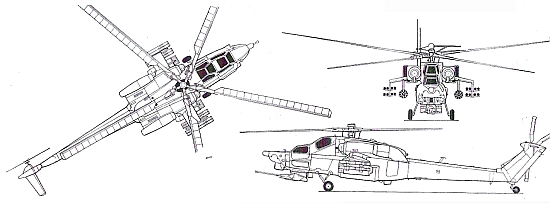 Вооружение: одна 30-мм пушка 2А42; максимальная боевая нагрузка 1920 кг, в том числе ПТУР 9М114 «Штурм-С», 9М120/9М121Ф «Вихрь» или 9А-2200 Двигатели: два ГТДТВЗ-117ВК мощностью по 2465 л.с.