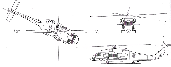 Страна-разработчик: США Тип: палубный многоцелевой вертолет. Нагрузка: максимальная платная нагрузка, перевозимая в кабине, 1860 кг (вариант НН-60Н)