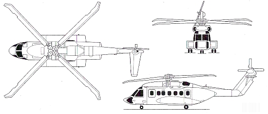 Первоначально вертолет S-92 рассматривался как увеличенный вариант вертолета S-70 и даже имел название «Гроус Хоук». Вертолет относится к классу средних многоцелевых вертолетов. Он предназначен для гражданского и военного использования (транспортный, ПЛО, поисково-спасательный, ДРЛОУ). Разработку вертолета фирма «Сикорский» начала в 1995 г. с привлечением иностранных партнеров - «Мицубиси» (Япония), «АЮС» (Тайвань), «Эмбраер» (Бразилия), «Гамеса» (Португалия) и «Jingde- zhen» (Китай). В конструкции вертолета S-92 используются динамические системы, отработанные на вертолетах S-70 и S-65. Широкое использование композиционных материалов позволило уменьшить массу планера на 40%. Первый опытный вертолет S-92 с двумя ГТД Дженерал Электрик CT7-9D поднялся в воздух 23 декабря 1996 г. Следующие три опытных машины были оснащены двигателями СТ7-8, которые будут использоваться на серийных вертолетах. По желанию заказчика могут применяться ГТД Роллс-РойсДурбомека RTM322. Вертолет имеет безопасно разрушаемую топливную систему, на военных вариантах предусматривается установка штанги топливопри- емника. Военный вертолет будет иметь хвостовую откидную грузовую рампу, сдвигающиеся по направляющим окна кабины, грузовой крюк, узлы для крепления шкворневой установки с 7,62-мм пулеметом и откидные сиденья для солдат (22 чел.). Так как платная нагрузка вертолета S-92 уступает европейскому вертолету ЕН-101, то фирма «Сикорский» планирует создать вариант с удлиненным фюзеляжем, который предлагается странам Скандинавии. Эти государства объявили конкурс на закупку 40 - 50 вертолетов для ПЛО, поисково-спасательных работ и транспортных операций. Канада рассматривает вертолет S-92 в качестве замены вертолетов СН-124«Си Кинг».