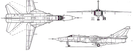 Страна-разработчик: СССР Тип: двухместный фронтовой бомбардировщик Вооружение: одна шестиствольная 23-мм пушка ГШ-6-23М с боезапасом 500 снарядов; максимальная боевая нагрузка 8000 кг; в состав вооружения входят ядерные бомбы ТН-1000 и ТН-1200, разнообразные УР класса воздух-поверхность Х-23, Х-25МЛ, Х-29Л/Т и Х-59 «Овод», противорадиолокационные ракеты Х-25МП, Х-31П, Х-29МП и Х-58, ПКР Х-31А и Х-35, корректируемые авиабомбы КАБ-500Кр с телевизионной системой наведения и КАБ-1500Л с лазерной системой наведения, до восьми блоков с PC, до трех контейнеров с пушками ГШ-6-23М, а также УР класса воздух-воздух Р-60