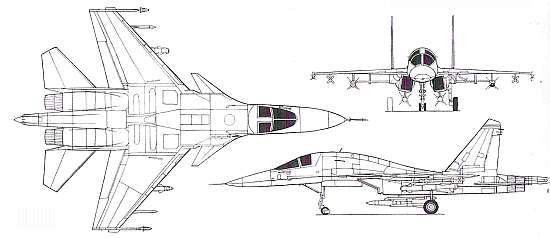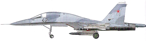 Страна-разработчик: Россия Тип: двухместный дальний фронтовой бомбардировщик Вооружение: одна 30-мм пушка ГШ-301; максимальная боевая нагрузка 8000 кг; в состав вооружения входят УР класса воздух-поверхность Х-25М, Х-29, Х-31А/П, Х-59М (обозначение НАТО - AS-18 «Kazoo»), Х-35 (AS-20 «Кауак») и ПКРХ-41 «Москит» Двигатели: дваТРДЦФ АЛ-31Ф тягой по 7600 кгс и 12510 кгс на форсажном режиме