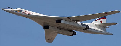 Ту-160 (обозначение НАТО - «Blackjack») является самым большим серийным бомбардировщиком в мире. Внешне похожий на американский В-1В, самолет Ту-160 способен совершать прорыв средств ПВО противника как на малой высоте на дозвуковой скорости, так и на большой высоте со скоростью, соответствующей числу М=1,9. Несмотря на то, что бомбардировщик оснащен ЭДСУ, кабина экипажа оборудована традиционными электромеханическими приборами; многофункциональные дисплеи и ИЛС отсутствуют. В длинной заостренной носовой части фюзеляжа расположена РЛС, которая обеспечивает выполнение боевой задачи, а также способствует полету в режиме огибания рельефа местности, Под носовой частью самолета находится обтекатель телекамеры, входящей в состав прицельного комплекса. Программа разработки самолета Ту-160 оказалось чрезвычайно растянутой. К его созданию приступили в начале 1970-х гг., а первый полет опытный экземпляр совершил 18 декабря 1981 г. Самолет выпускался серийно в Казани до января 1992 г., когда бывший тогда президентом Борис Ельцин объявил, что больше не будет построен ни один стратегический бомбардировщик. Всего удалось выпустить 35 самолетов. Даже после того как самолет поступил на вооружение, в процессе производства устранялись различные проблемы, ограничивавшие эксплуатацию бомбардировщика, По этой причине отдельные элементы конструкции крыльев, воздухозаборников и БРЭО отличались от самолета к самолету. В мае 1987 г. самолеты Ту-160 начали поступать на вооружение 184-го гвардейского бомбардировочного авиаполка, базировавшегося в Прилуках (Украина), где после распада СССР остались 19 машин. Однако в результате длительных переговоров между Украиной и Россией восемь самолетов были в 1999 г. возвращены. Утилизация оставшихся на Украине бомбардировщиков началась в конце 1998 г. по договору, подписанному по инициативе правительства США. К началу 2001 г. в соответствии с договором ОСВ-2 Россия официально обладала шестью бомбардировщиками Ту-160, на вооружении которых находятся стратегические КР. Эти самолеты входят в состав 121 -го гвардейского авиаполка, базирующегося в Энгельсе и имеющего всего около 15 машин. В настоящее время Россия вряд ли располагает средствами для ремонта и доведения до летного состояния еще 12 самолетов Ту-160. Имеются сообщения, что американская компания «Платформе Интернешнл Корпорэйшн» приобрела у Украины шесть разоруженных самолетов Ту-160 для переоборудования в вариант Ту-160СК, предназначенный для запуска авиационной ракеты-носителя.