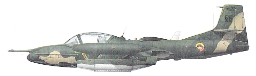 Страна-разработчик: США Тип: двухместный легкий штурмовик и самолет наведения Вооружение: один 7,62-мм пулемет GAU-213/A7 «Миниган» в носовой части фюзеляжа; на восьми подкрыльных узлах (четыре внутренних рассчитаны на 395 кг, два средних - на 272 кг и два внешних - на 227 кг) возможна подвеска бомб Мк.82 калибром 227 кг и блоков с PC Двигатели: два ТРД Дженерал Электрик J85-17A тягой по 1295 кге J1TX: максимальная скорость 840 км/ч;скороподъемность