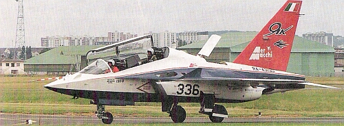 Самолет Як-130 был разработан в соответствии с теми же требованиями ВВС России, что и самолет МиГ-AT. Вместе с тренажерной базой он будет входить в учебно-тренировочный комплекс по типу комплекса T-45TS, который сформирован в ВМС США. В отличие от МиГ-AT самолет Як-130 имеет стреловидное крыло с вертикальными законцовка- ми. При взлете воздух в двигатели подается через боковые воздухозаборники, а также через вспомогательные воздухозаборники на верхней поверхности в корневых частях крыла. В 1992 г. ОКБ Яковлева подписало соглашение с итальянской фирмой «Аэрмакки» о совместной разработке самолета Як-130. Самолет Як-130 оснащен системой управления, которая может перепрограммироваться в зависимости от типа боевого самолета. Подобная система применяется и на МиГ-AT, Созданный совместно с итальянской фирмой Як/АЕМ-130 имеет комплекс БРЭО и бортовое оборудование, разработанное фирмами «ВАЕ Системз» и «Ханиуэлл». Позднее фирма «Аэрмакки» вышла из программы и создала на основе самолета Як-130 свой легкий самолет М-346.