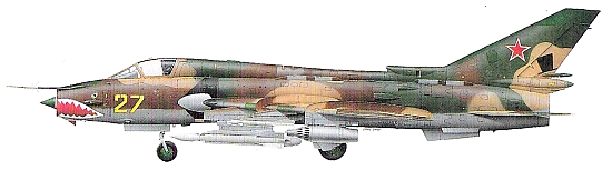 Страна-разработчик: СССР Тип: одноместный истребитель-бомбардировщик Вооружение: две 30-мм пушки НР-30 с боезапасом по 80 снарядов; максимальная боевая нагрузка 4250 кг; в состав вооружения смогут входить УР класса воздух-поверхность с радиокоманд-ной, телевизионной и лазерной системами наведения Х-23, Х-25, Х-29 и Х-58, ракеты класса воздух-воздух Р-60, блоки с PC калибром от 57 до 330 мм, обычные бомбы и КАБ, подвесные контейнеры с пушками ГШ-23Л Двигатель: одинТРДФАЛ-21Ф-3 тягой 7800 кгс и 11260 кгс на форсажном режиме ЛТХ: максимальная скорость у земли 1400 км/ч; максимальная скороподъемность у земли 230 м/с; практический потолок 15200 м; боевой радиус с боевой нагрузкой 2000 кг - 1150 км Массы: нормальная взлетная 16400 кг; максимальная взлетная 19500 кг Размеры: размах крыла при минимальном угле стреловидности 13,8 м; при максимальном - Юм; длина со штангами ПВД18,75 м; высота 5 м; площадь крыла при минимальном угле стреловидности 40 м2; при максимальном - 37 м2